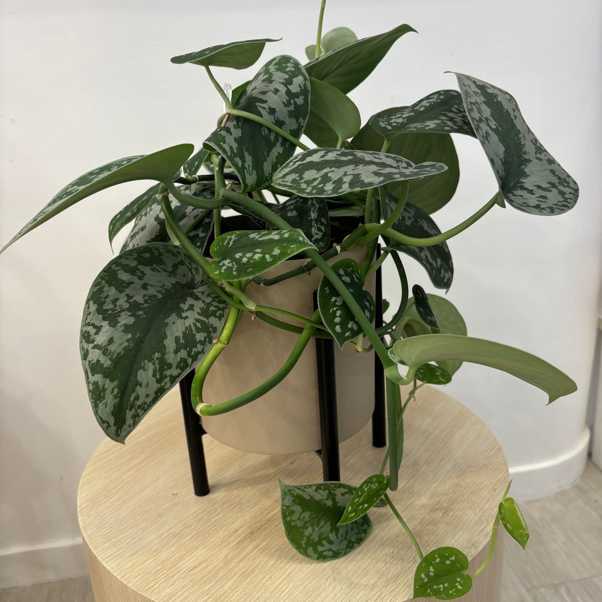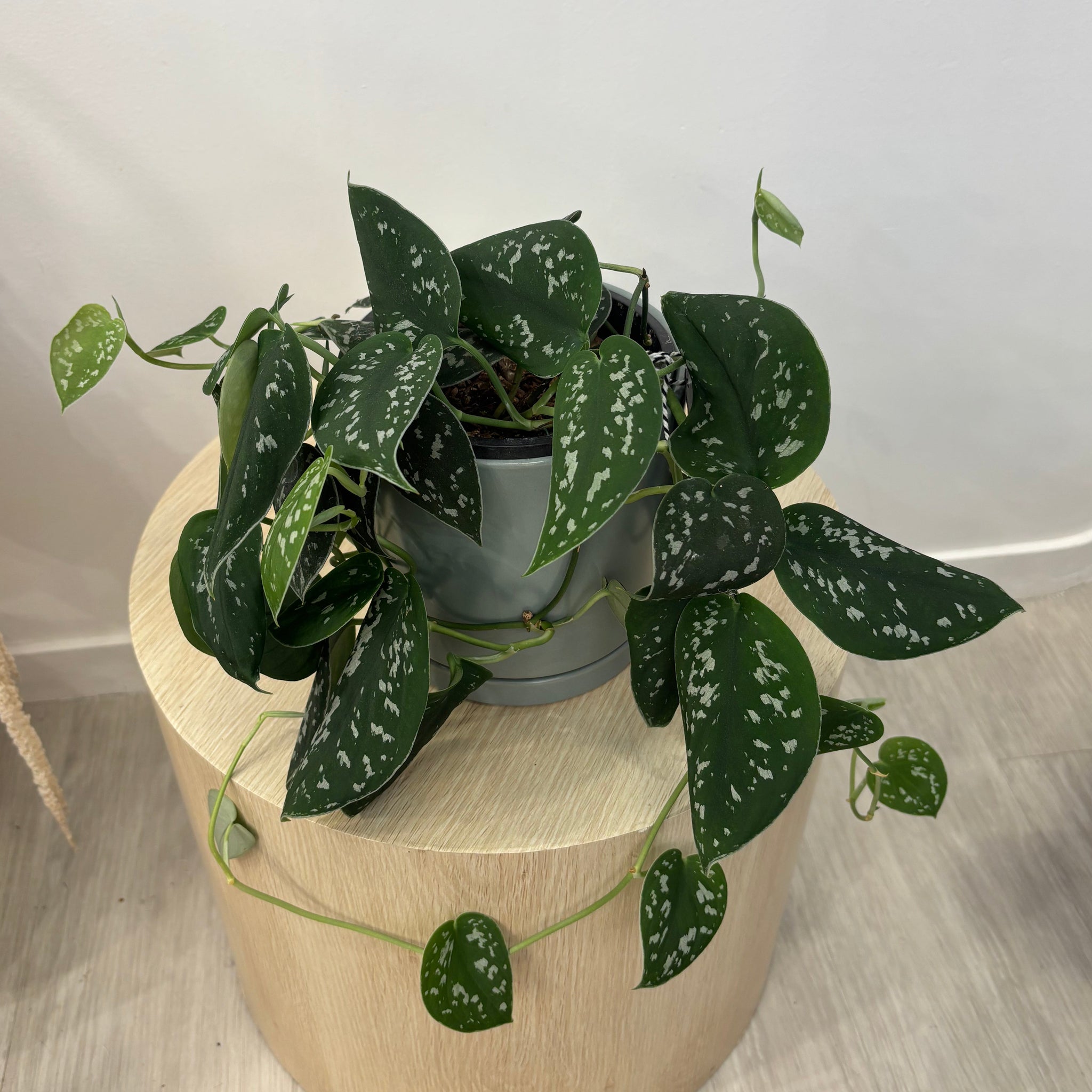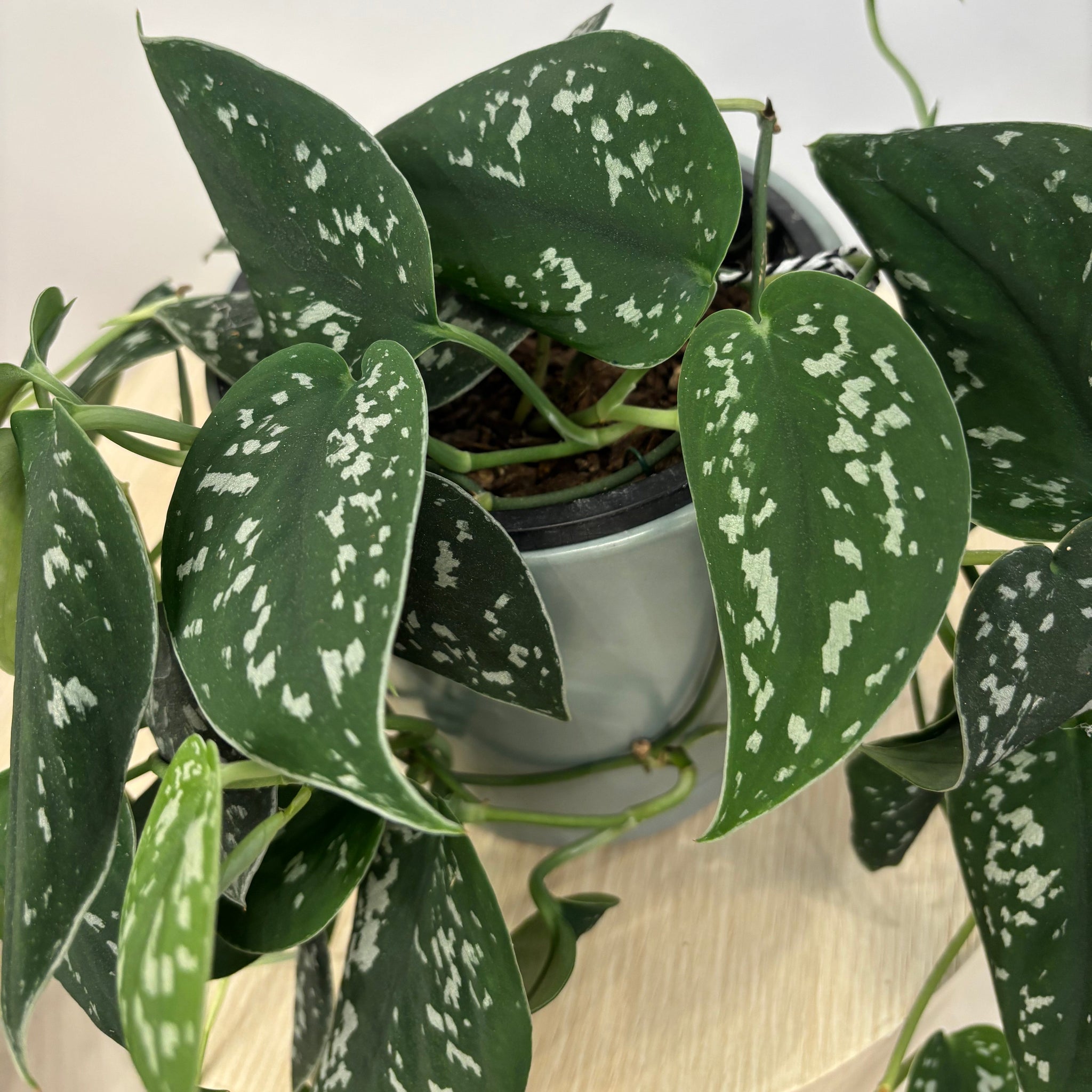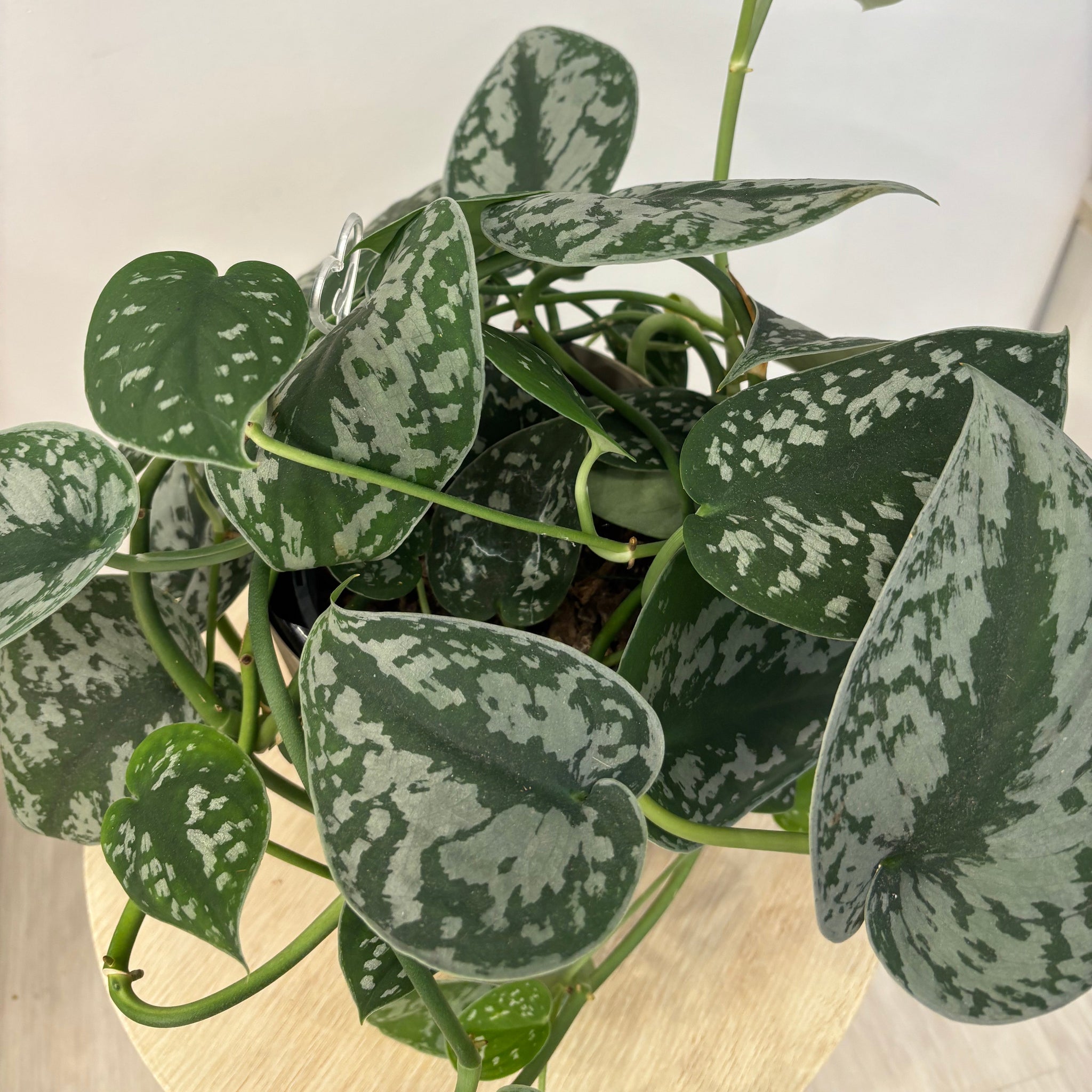 The Epipremnum 'Trebie' (also known as Scindapsus pictus 'Trebie' or Satin Pothos 'Trebie') is a popular, low-maintenance houseplant known for its large, heart-shaped green leaves with distinctive silvery-white splotches. It is a slow-growing, trailing vine often used in hanging baskets or trained to climb a support.