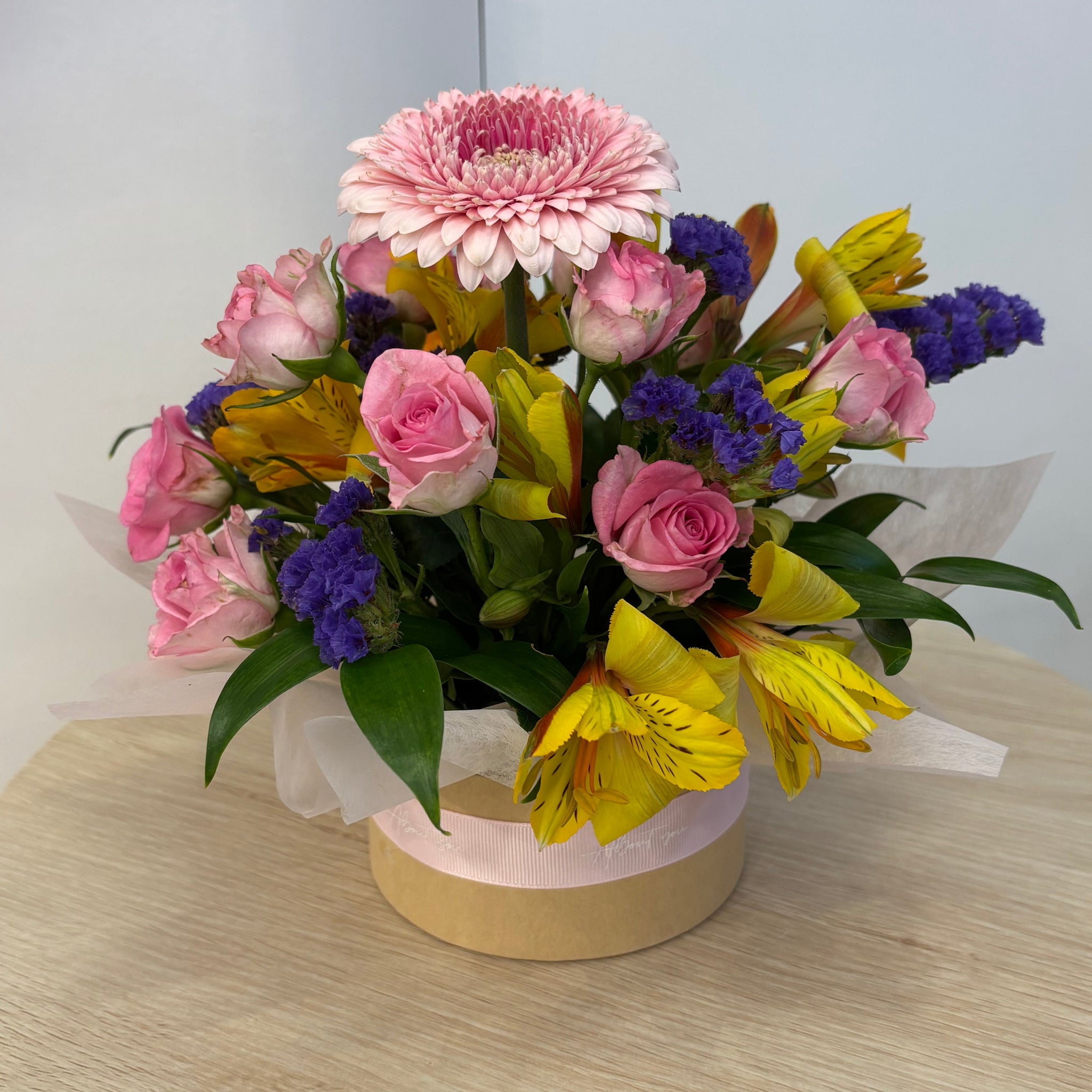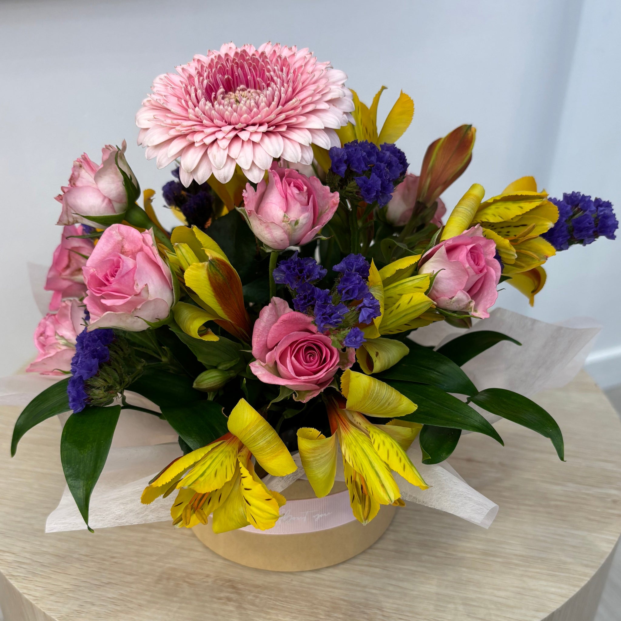 Unlock pure joy with our Florist Choice Hatbox Arrangement—where seasonal magic meets gift-giving genius. Our creative florists handpick the freshest, most fabulous blooms available and arrange them with playful artistry inside a stunning hatbox that's almost as pretty as what's inside. Every arrangement is a unique celebration bursting with colour, personality, and seasonal charm. Perfect for birthdays, celebrations, apologies, congratulations, or those spontaneous "thinking of you" moments. It arrives complete, beautifully boxed, and ready to make someone's day infinitely brighter.