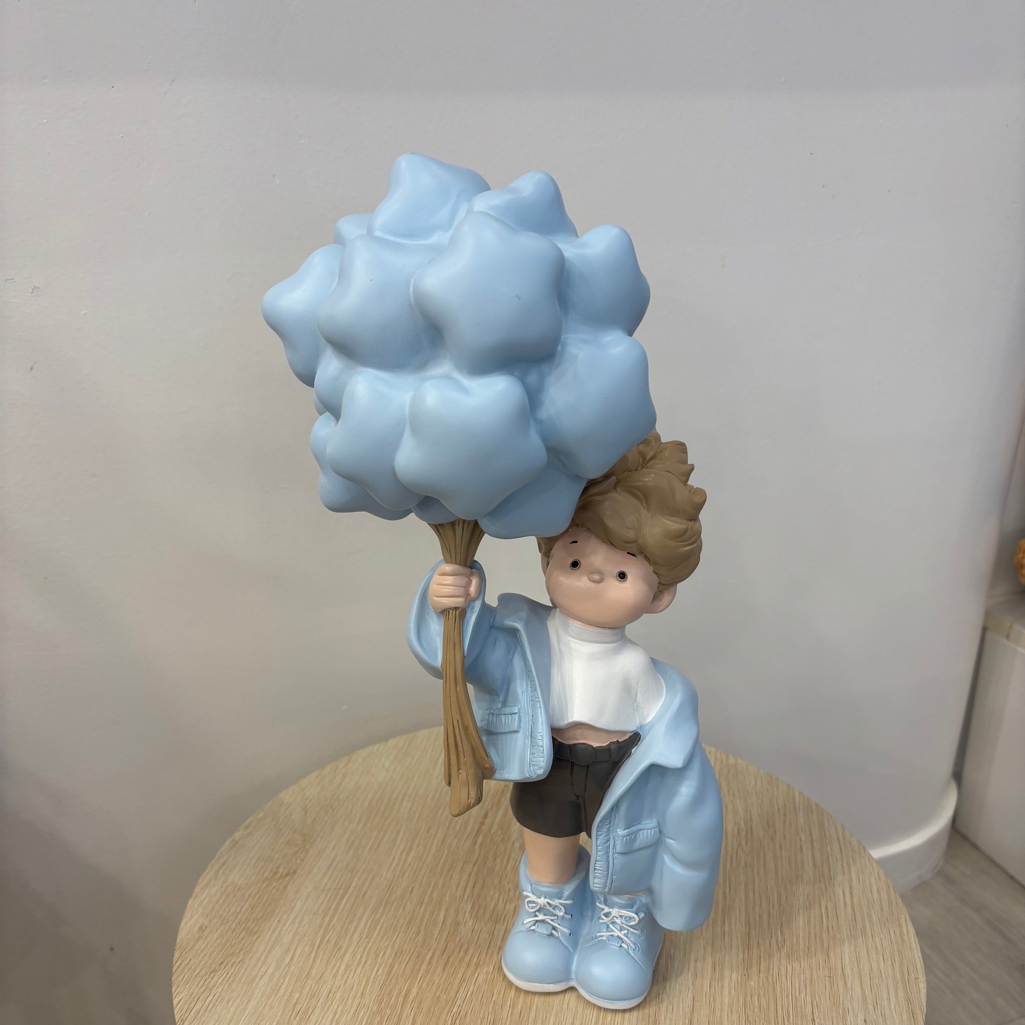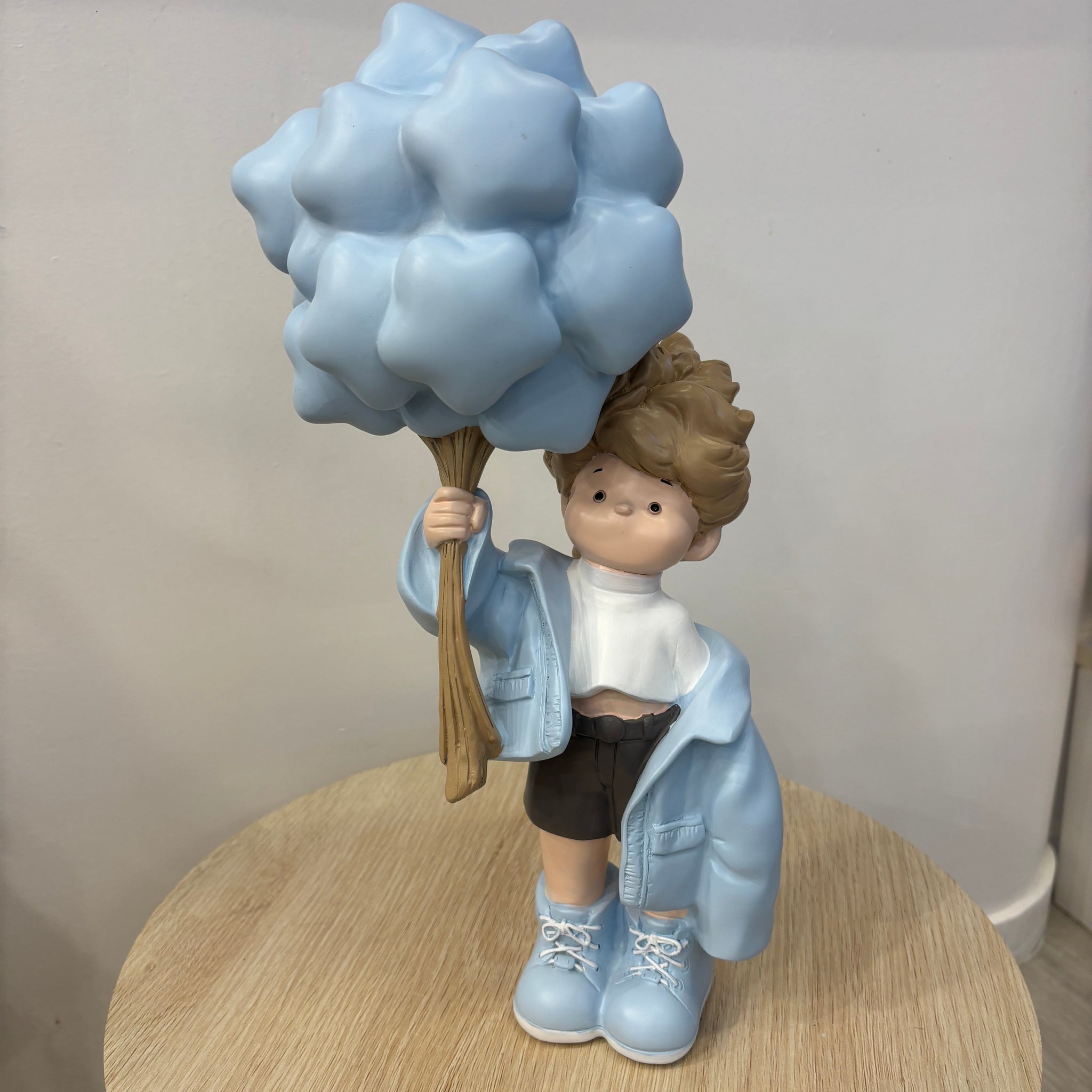 Introducing the Balloon Boy—a delightfully whimsical resin treasure! This cheerful little character clutches a vibrant bunch of blue balloons, radiating happiness and charm. Perfectly sized at (approx) 36.5cmcm tall and 13.5cm wide, he's ideal for brightening shelves, desks, nightstands, or gift tables. Handcrafted with playful personality, this special edition figurine makes a wonderful keepsake for those who love quirky, joyful décor pieces.